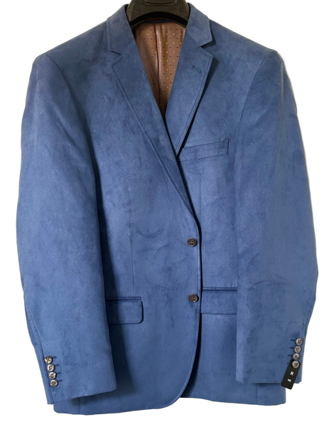 This men's slim fit sports jacket in blue suede-look is fully lined for comfort. It includes a 2-button front, a notch lapel, two flap pockets, and a chest pocket. Additional details include side vents and three interior pockets for added functionality.