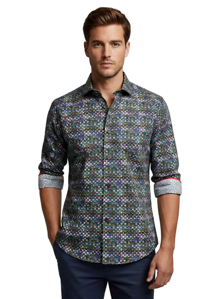 Elevate your everyday wardrobe with this striking multicolor long-sleeve shirt, designed for the modern man who refuses to compromise. Cut in a flattering slim fit and 100% cotton, this piece delivers breathable comfort without sacrificing style. The geometric print adds visual interest to any outfit, making it versatile enough for casual wear or smart-casual occasions. Invest in quality that feels as good as it looks.
