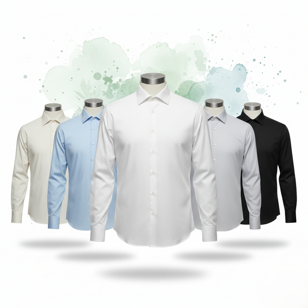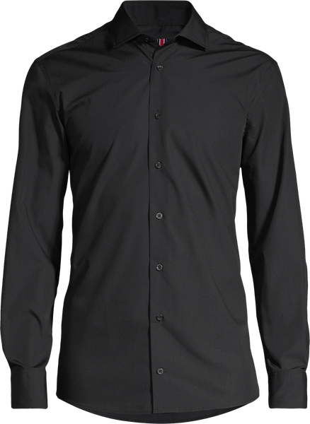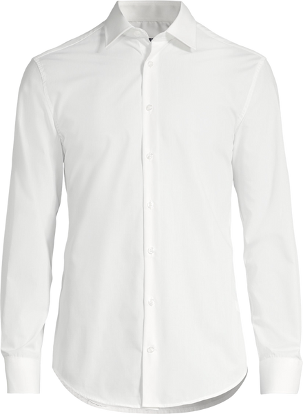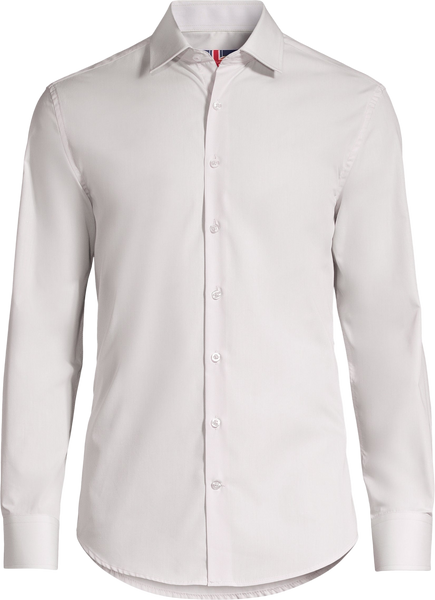 This dress shirt boasts a contemporary modern fit, crafted from a dependable cotton blend. Available in several fashionable shades, pair with a coordinating tie for a seamless, sophisticated ensemble. It also features a 1/4" stitch and a semi spread collar with no pocket. Constructed of 65% polyester and 35% cotton.